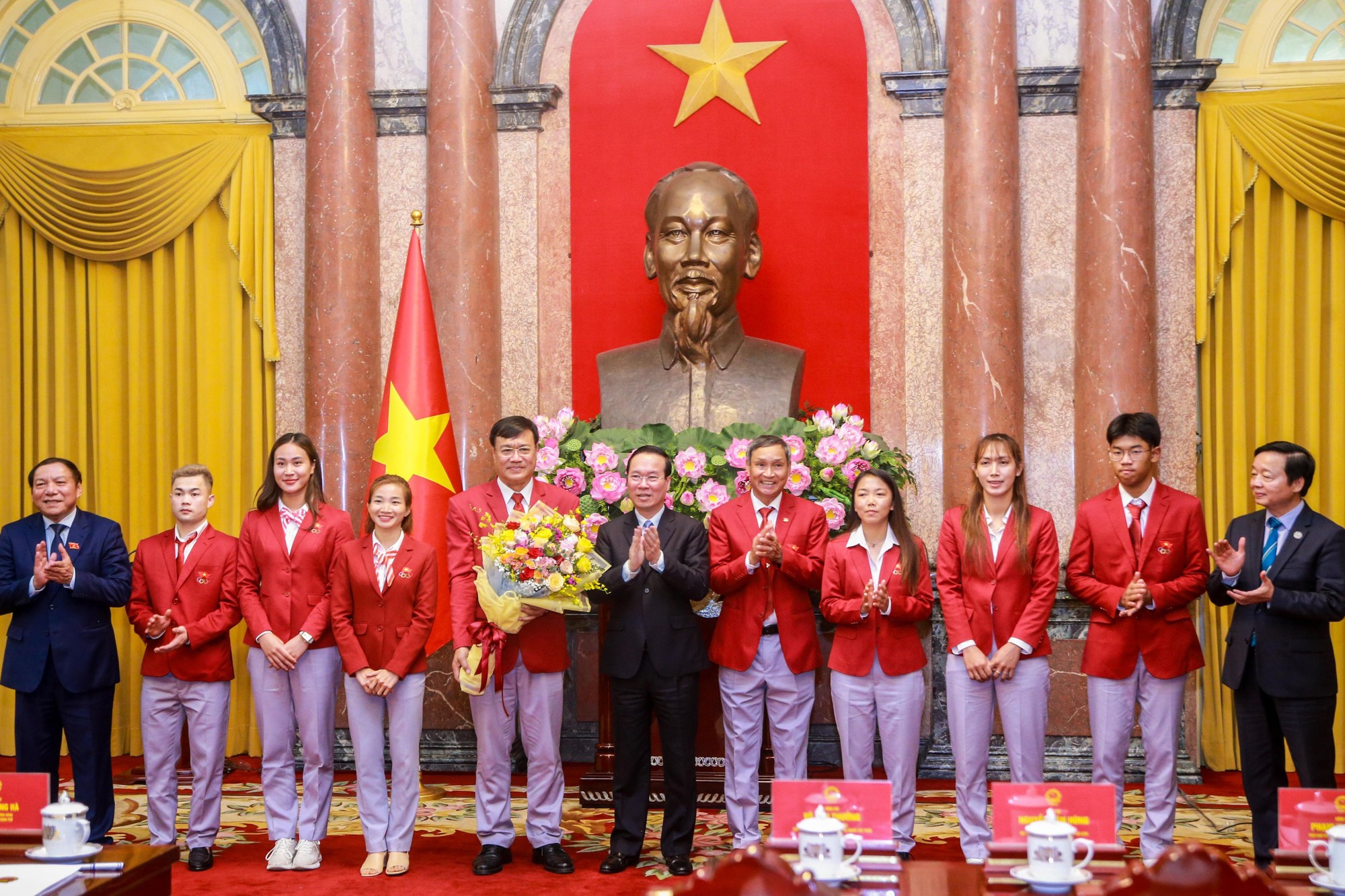 Trong khuôn khổ buổi gặp mặt, chúc mừng thành tích của đoàn Thể thao Việt Nam, Chủ tịch nước Võ Văn Thưởng rất ấn tượng và cho rằng thành tích của đoàn Thể thao Việt Nam tạo cảm hứng mạnh mẽ cho mỗi người cùng phấn đấu, hướng đến cuộc sống tốt đẹp, ý nghĩa hơn.