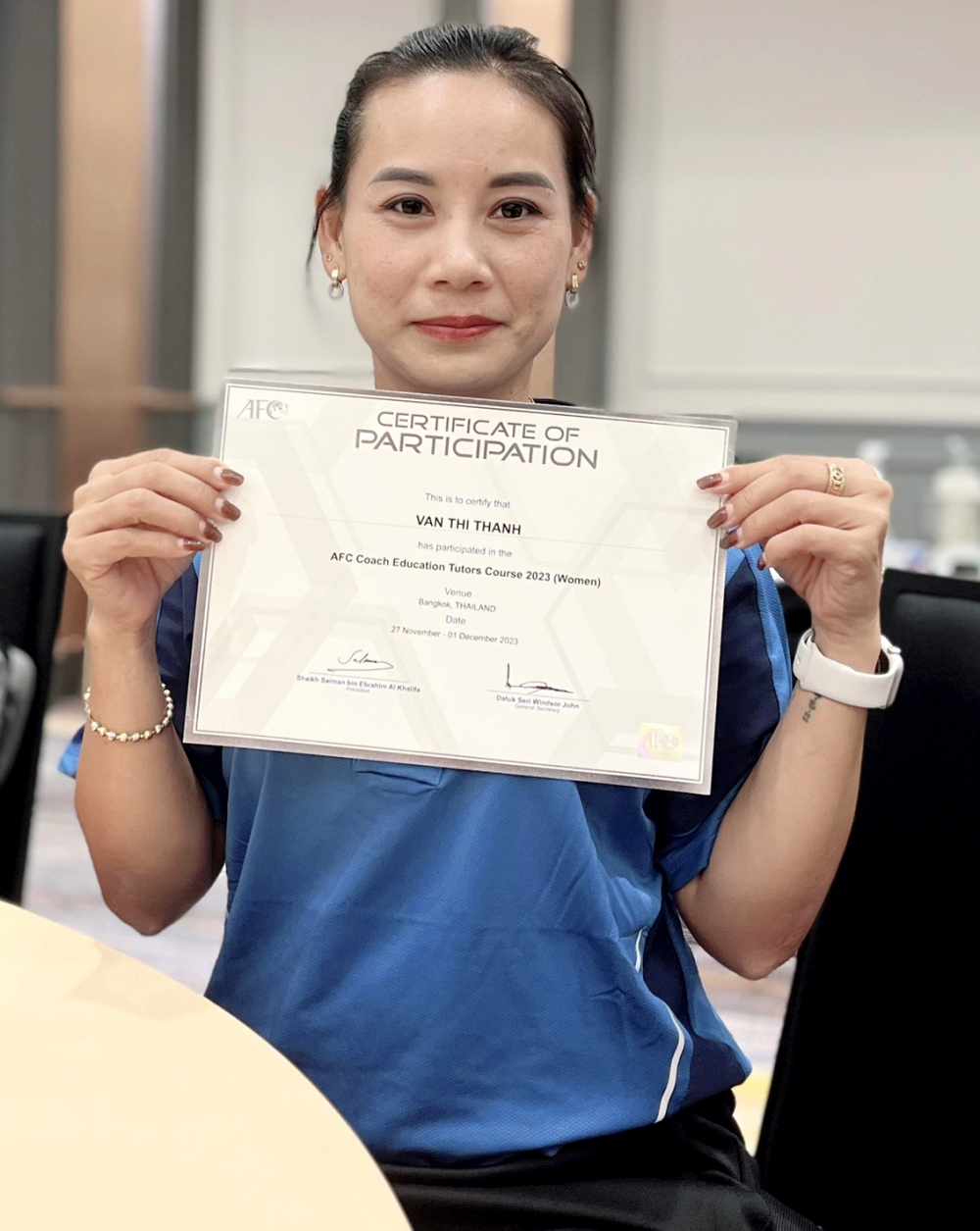 Cuối năm 2023, HLV Văn Thị Thanh là đại diện của bóng đá nữ Việt Nam tham dự khóa đào tạo giảng viên dành cho bóng đá nữ lần thứ hai tại Bangkok, Thái Lan. Khóa học do Liên đoàn Bóng đá châu Á (AFC) tổ chức nhằm nâng cao chất lượng bóng đá nữ cho khu vực Đông Nam Á. Tham gia các khóa học, Thanh mong muốn trở thành HLV thực sự giỏi để có thể đóng góp cho sự phát triển của bóng đá nữ Việt Nam. Bởi chỉ những HLV hiểu biết sâu sắc về môn thể thao này mới có thể đào tạo ra những cầu thủ chất lượng cho tương lai.