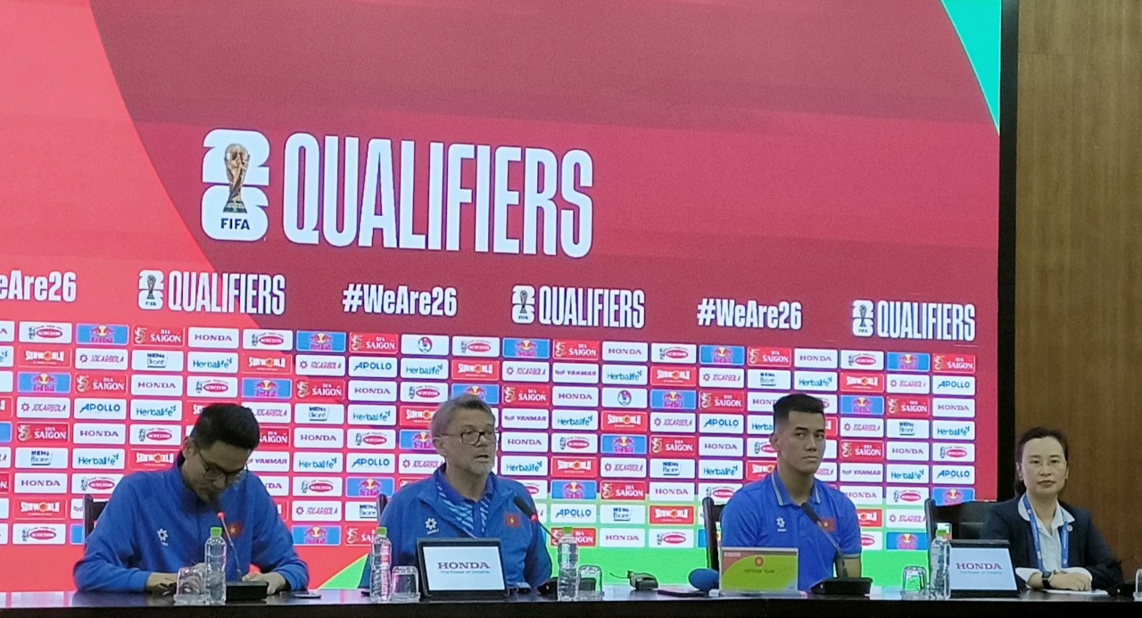 Chia sẻ với báo chí trong buổi họp báo trưa ngày 25/3, HLV người Pháp cho biết: “Việt Nam vẫn giữ nguyên mục tiêu, đó là giành kết quả tốt nhất để vào vòng loại thứ ba World Cup 2026. Sau trận đấu ngày mai với Indonesia, chúng tôi còn hai trận nữa (gặp Iraq và Philippines). Trong bối cảnh hiện tại của bảng F, Việt Nam vẫn nắm quyền chủ động, tự quyết. Tập thể đội bóng luôn tin vào mục tiêu cuối cùng đã đề ra".