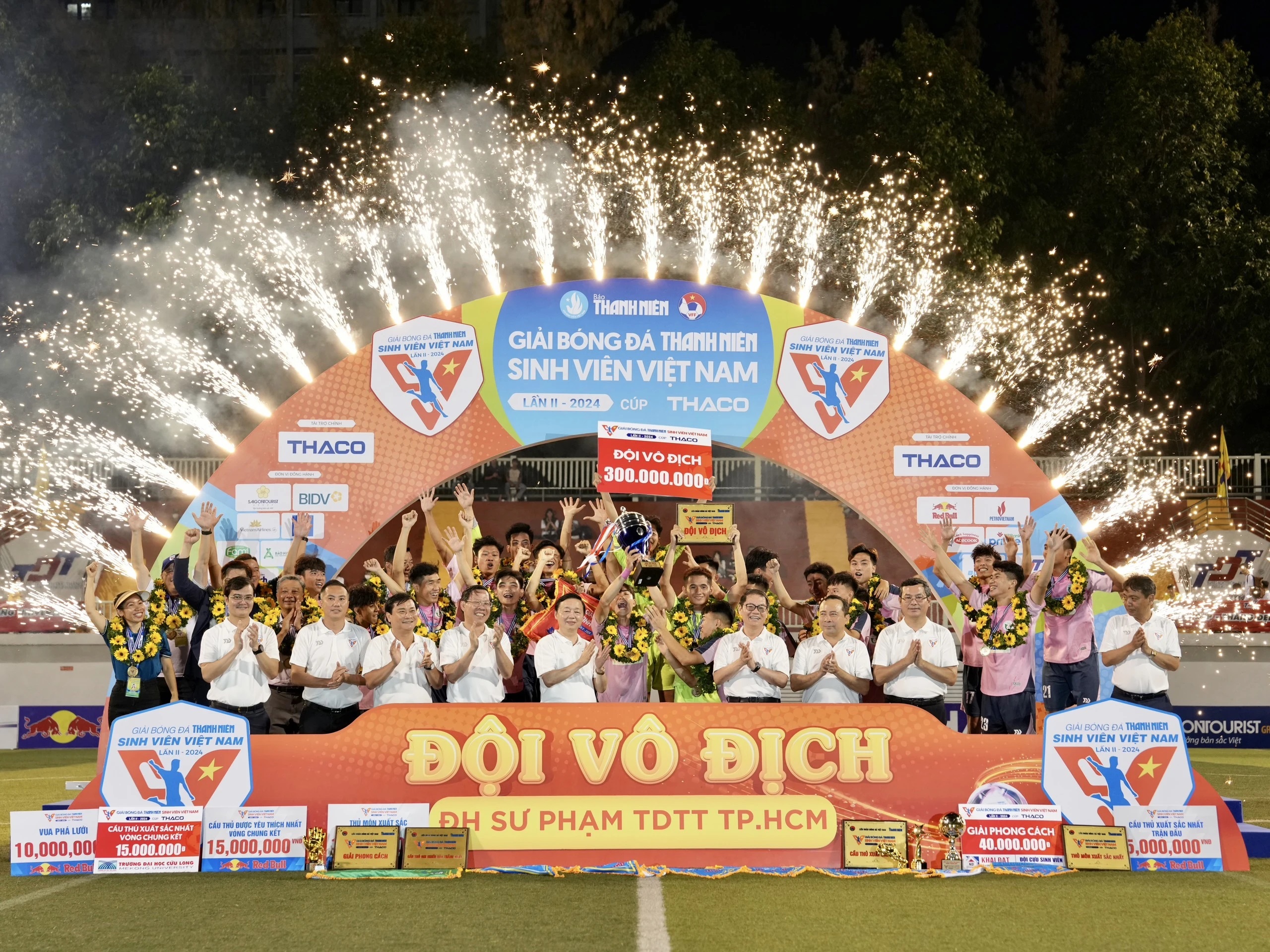 Ở trận chung kết, đội Trường ĐH Sư phạm TDTT TP.HCM giành chiến thắng với tỷ số 4-2 ở loạt luân lưu, qua đó giành chức vô địch giải thanh niên sinh viên THACO Cup 2024. Đây là lần đầu tiên đội Trường Đại học Sư phạm TDTT TP.HCM lên ngôi vô địch giải. Ngôi á quân thuộc về đội Trường ĐH Thủy Lợi, hai đội hạng ba là Trường Đại học Tôn Đức Thắng và Trường Đại học Công nghệ Đồng Nai.