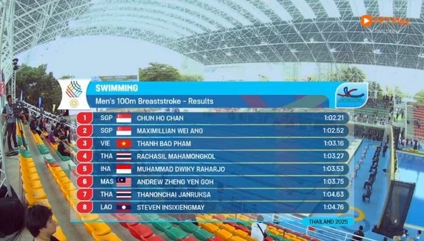 Trước đó, buổi sáng môn bơi được coi là thi đấu thành công nhất khi kết thúc một loạt nội dung vòng loại, Bơi Việt Nam đã có 4/6 kình ngư được góp mặt tại chung kết các nội dung bơi. Gồm Phạm Thanh Bảo, Jeremie Lương, Nguyễn Khả Nhi và Võ Thị Mỹ Tiên. Cao nhất là Thanh Bảo với vị trí thứ 3 trong khi Võ Thị Mỹ Tiên dù đứng thứ 8 nhưng vẫn đủ thành tích thi chung kết. 2 VĐV bị loại là Trịnh Trường Vinh và Nguyễn Ngọc Tuyết Hân.