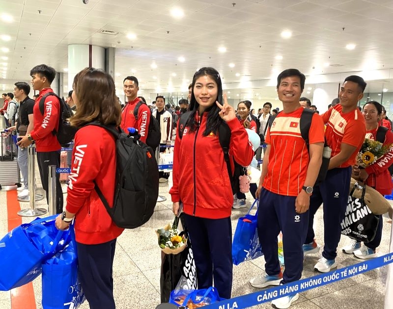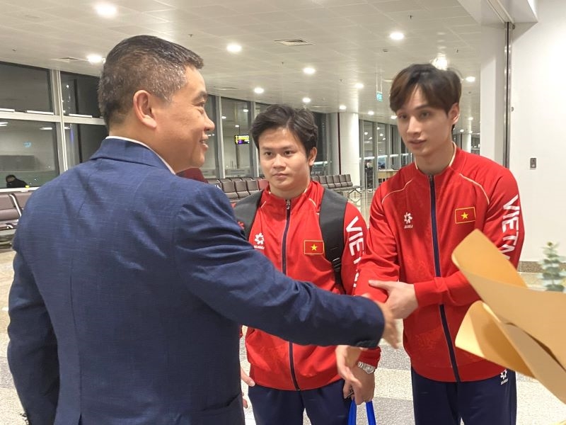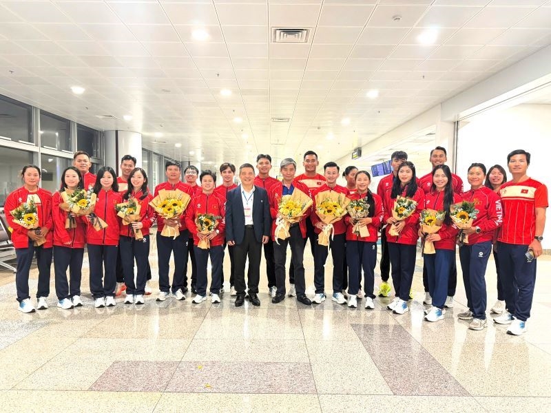 Ra đón đội tại Sân bay quốc tế Nội Bài có ông Vũ Xuân Thành – Chánh Văn phòng Cục Thể dục Thể thao Việt Nam, cùng đại diện các phòng, ban chuyên môn và lãnh đạo Trung tâm Đào tạo VĐV cấp cao quốc gia.