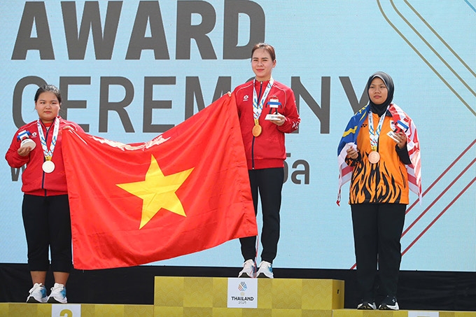 Bên cạnh đó, ở môn Cử tạ cũng có tới 3 nội dung chung kết và chúng ta đã giành 1 HCĐ của đô cử Quàng Thị Tâm (hạng 58 kg nữ).