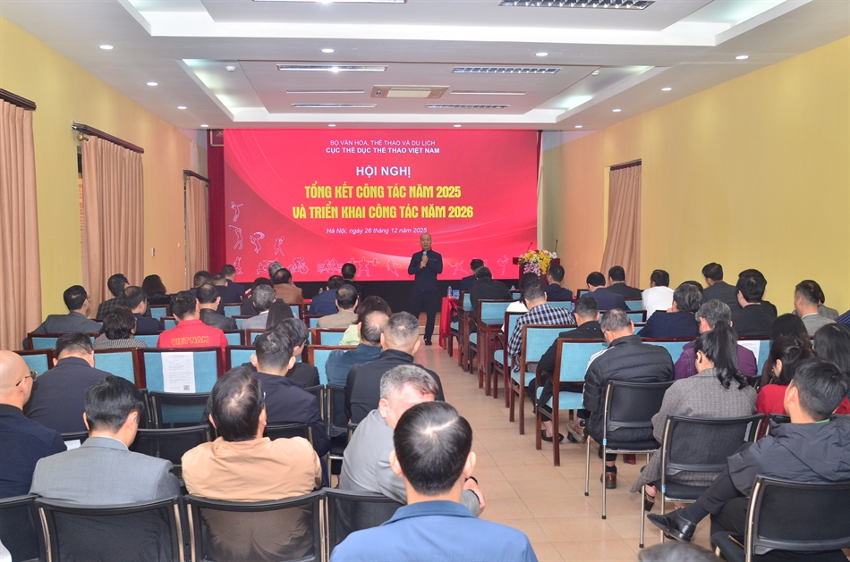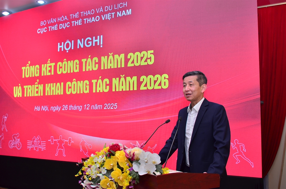 Sáng ngày 26/12, tại Hà Nội, Cục Thể dục thể thao Việt Nam đã tổ chức Hội nghị tổng kết công tác năm 2025 và triển khai nhiệm vụ trọng tâm năm 2026. Thứ trưởng Bộ Văn hóa, Thể thao và Du lịch Hoàng Đạo Cương đã tới dự và phát biểu chỉ đạo Hội nghị.