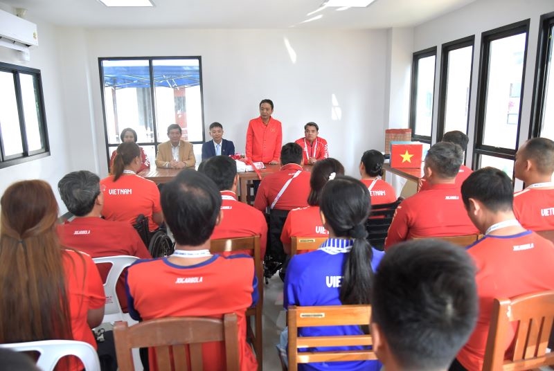Tại buổi gặp mặt, Thứ trưởng Hoàng Đạo Cương ân cần thăm hỏi tình hình sức khỏe của các VĐV, HLV; đồng thời tìm hiểu cụ thể điều kiện ăn ở, sinh hoạt, tập luyện của đoàn trong những ngày đầu có mặt tại Thái Lan. Thứ trưởng ghi nhận tinh thần nỗ lực, ý chí vượt khó và sự chuẩn bị nghiêm túc của các đội tuyển, khẳng định lãnh đạo Bộ VHTTDL luôn quan tâm, theo dõi sát sao và tạo điều kiện thuận lợi nhất để đoàn TTNKT Việt Nam yên tâm thi đấu.