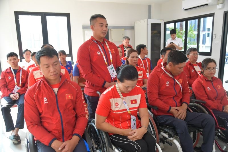 Thay mặt đoàn, Trưởng đoàn Lê Thị Hoàng Yến báo cáo nhanh với lãnh đạo Bộ về tình hình ổn định chỗ ở, điều kiện tập luyện tại các địa điểm thi đấu, đồng thời khẳng định toàn đoàn đang duy trì tinh thần tập trung, quyết tâm cao trước ngày tranh tài chính thức. Chủ tịch Ủy ban Paralympic Việt Nam Huỳnh Vĩnh Ái cũng bày tỏ cảm ơn sự quan tâm, động viên kịp thời của lãnh đạo Bộ VHTTDL, coi đây là nguồn động viên tinh thần to lớn đối với các VĐV và ban huấn luyện các đội tuyển.