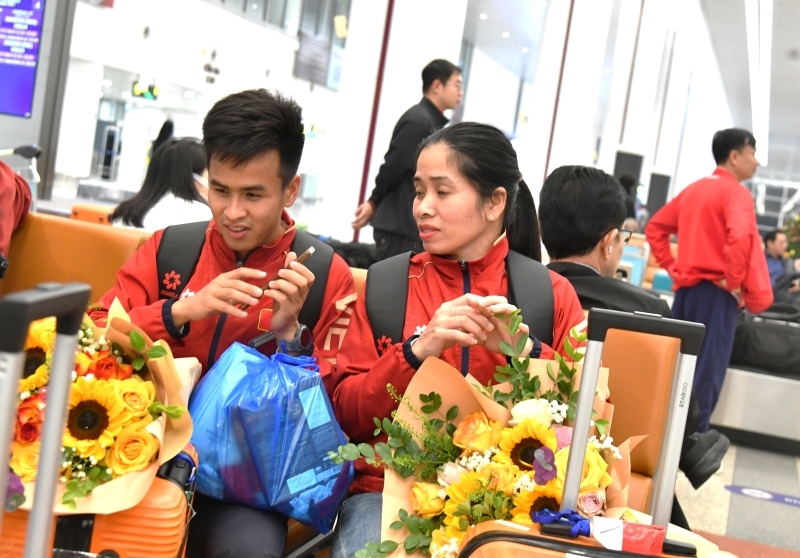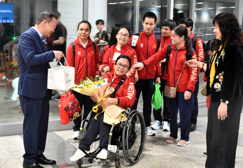 Ra đón đoàn tại sân bay có Phó Cục trưởng Cục TDTT Việt Nam Nguyễn Hồng Minh cùng lãnh đạo Phòng Thể dục thể thao cho mọi người và các phòng chức năng, Ủy ban Paralympic Việt Nam cùng người thân của các VĐV. Thay mặt lãnh đạo Cục TDTT Việt Nam, Phó Cục trưởng Nguyễn Hồng Minh đã tặng hoa cho lãnh đạo đoàn và VĐV, HLV. Phó Cục trưởng Nguyễn Hồng Minh biểu dương, ghi nhận những thành tích đã đạt được của các VĐV, đồng thời khẳng định mỗi VĐV đã nỗ lực hết sức, khắc phục khó khăn để giành thành tích tốt nhất, giúp đoàn TTNKT Việt Nam vượt mục tiêu đề ra.