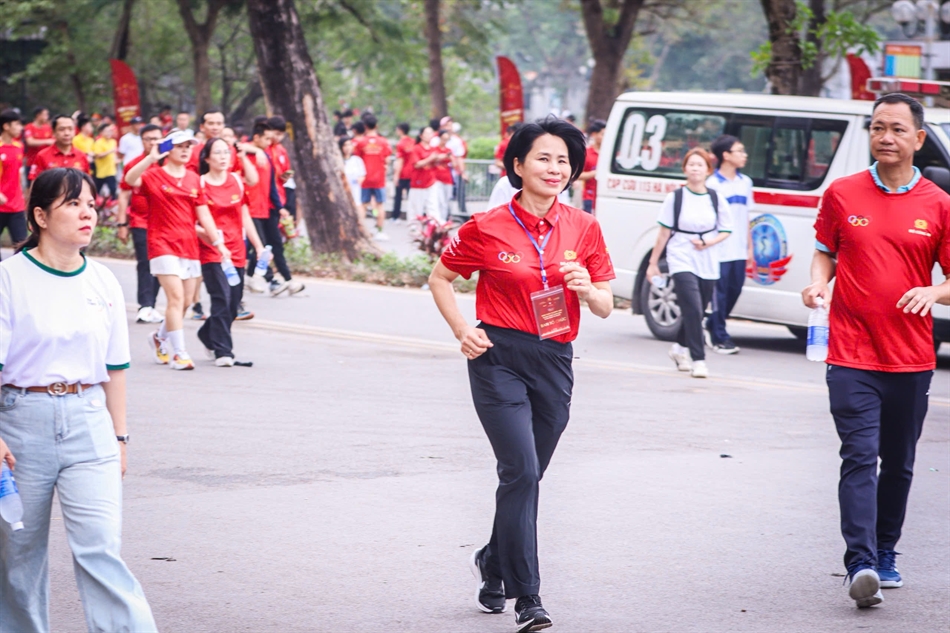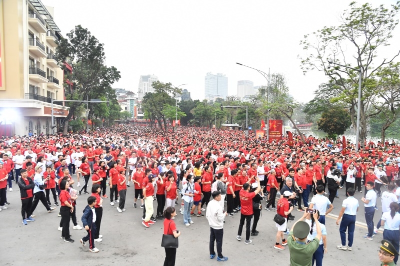 Ngay sau phần phát biểu Khai mạc và phát động, các đồng chí lãnh đạo, các đại biểu và toàn thể nhân dân tại khu vực phố đi bộ Hồ Hoàn Kiếm đã cùng nhau tham gia chạy hưởng ứng, lan tỏa mạnh mẽ thông điệp rèn luyện thân thể, nâng cao sức khỏe vì bản thân, gia đình và xã hội.