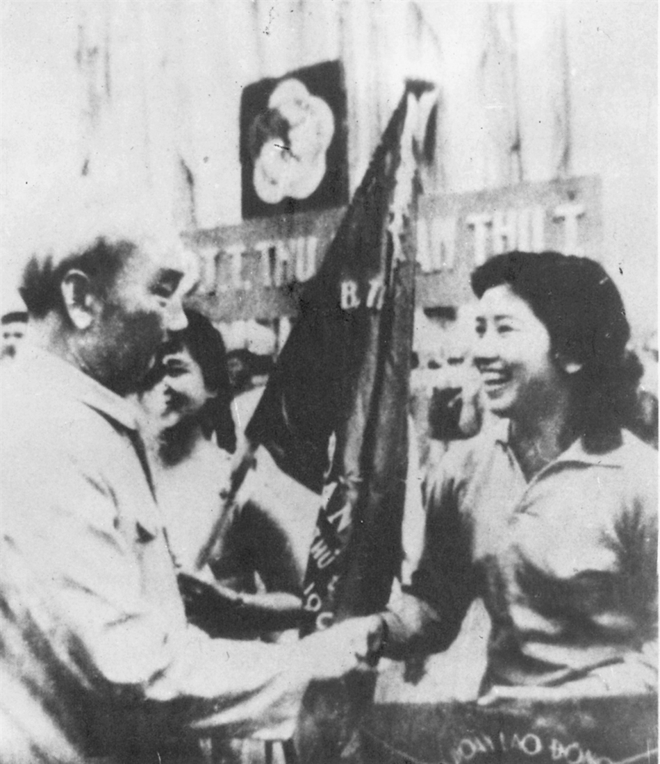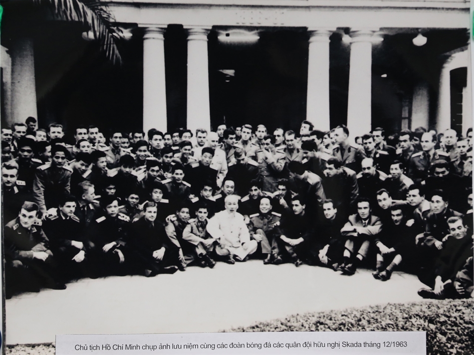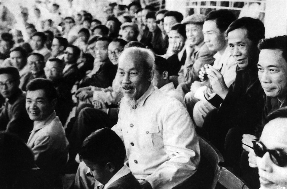 Bác Hồ cùng các đồng chính lãnh đạo Đảng, Chính phủ dự khán trên sân vận động Hàng Đẫy, Hà Nội.