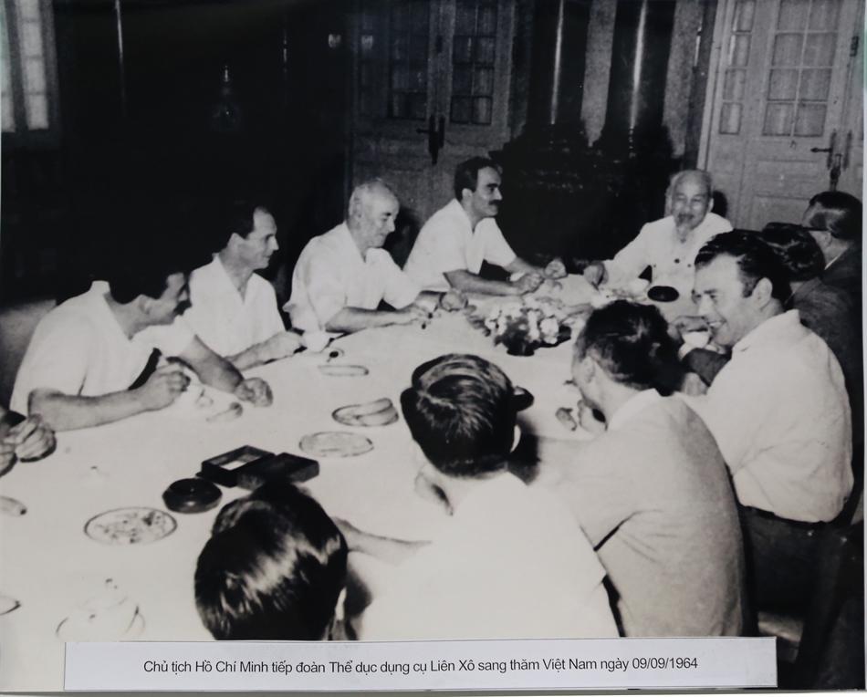 Bác Hồ tiếp đoàn thể dục dụng cụ Liên Xô sang thăm Việt Nam ngày 9/9/1964.