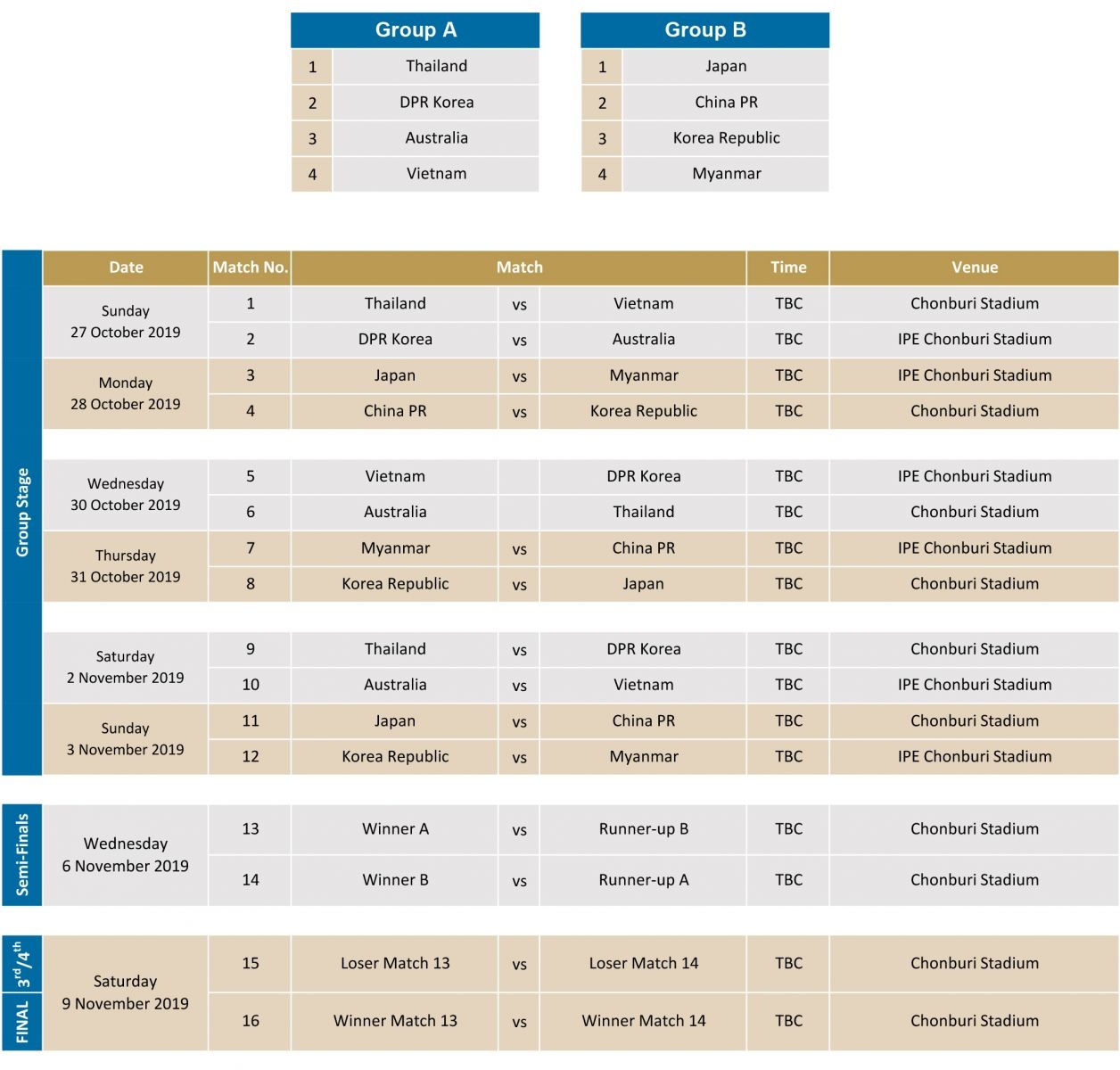 VCK U19 nữ châu Á 2019 diễn ra tại Chonburi, Thái Lan từ ngày 27/10 đến 9/11. Đội tuyển U19 nữ Việt Nam nằm ở bảng A với các đối thủ khá mạnh gồm CHDCND Triều Tiên, Australia và chủ nhà Thái Lan. Để chuẩn bị cho sân chơi cao nhất châu lục, thầy trò HLV Ijiri Akira đã có chuyến tập huấn ngắn ngày (từ 9/10 đến 14/10) tại thành phố Mandalay, Myanmar với 2 trận đấu giao hữu cùng đội tuyển U19 nữ Myanmar (đội nằm ở bảng B VCK U19 nữ châu Á 2019). Kết quả, đội tuyển U19 nữ Việt Nam lần lượt giành chiến thắng 1-0 và hòa 2-2 trong trận tái đấu trước U19 nữ Myanmar. Với HLV trưởng Akira hai trận giao hữu trên là điều kiện để rà soát lần cuối đội hình, đồng thời bổ sung kinh nghiệm thi đấu cho các cầu thủ.