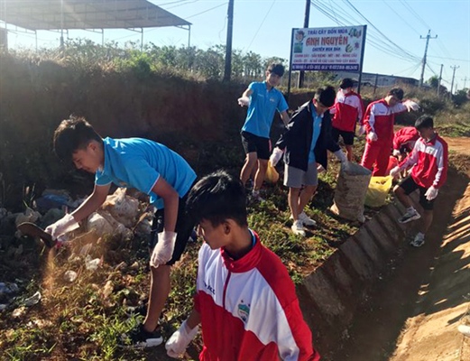 Các VĐV chung tay bảo vệ môi trường bằng cách thu gom rác tại nơi tập luyện (Ảnh:K.Tùng)