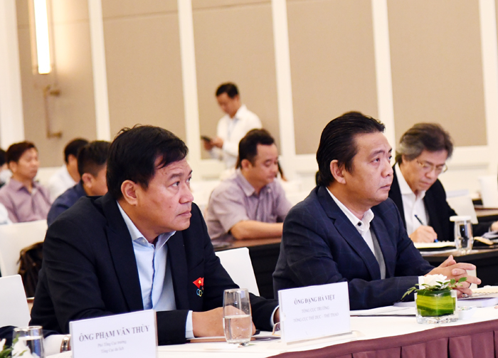 Lãnh đạo Bộ VHTTDL, Tổng cục TDTT tham dự Hội nghị - Hội thảo tại điểm cầu Hà Nội (Ảnh: QB)