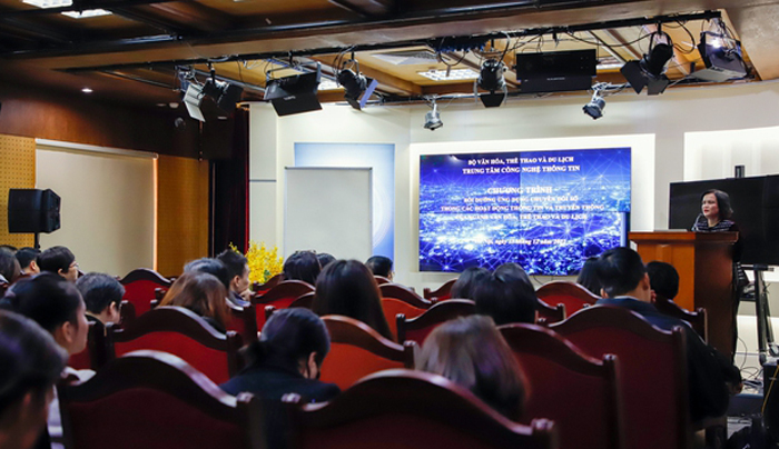 Hàng năm, Bộ VHTTDL thường xuyên tổ chức các lớp đào tạo, bồi dưỡng về CNTT: Vận hành phần mềm quản lý, hệ thống an toàn an ninh mạng, truyền thông, báo chí.... Năm nay là năm Chính phủ và Bộ Thông tin truyền thông đẩy mạnh triển khai hoạt động Chuyển đổi số, bởi vậy Bộ VHTTDL đã lựa chọn nội dung đào tạo, bồi dưỡng ứng dụng chuyển đổi số trong hoạt động thông tin, truyền thông."
