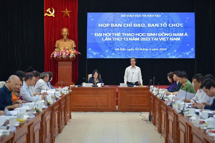 Phát biểu tại phiên họp, Bộ trưởng Nguyễn Kim Sơn cho biết: Bộ GD&ĐT được Thủ tướng giao trách nhiệm chủ trì Đại hội Thể thao học sinh Đông Nam Á lần thứ 13 - đây là vinh dự lớn. Không chỉ là hoạt động phong trào, Đại hội cũng là một hoạt động chuyên môn, hoạt động ngoại giao, liên quan đến tình hữu nghị của các quốc gia trong khu vực Đông Nam Á; thể hiện hình ảnh của Việt Nam với bạn bè quốc tế... Với quy mô, tính chất quốc tế của Đại hội như vậy, Bộ GD&ĐT xác định đây là việc quan trọng, Lãnh đạo Bộ cần tập trung chỉ đạo.