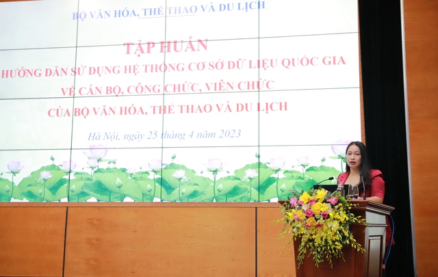Phát biểu tại buổi tập huấn, bà Lê Thị Phượng, Vụ trưởng Vụ Tổ chức cán bộ, Bộ VHTTDL cho biết: Bộ VHTTDL đã ban hành Quyết định số 2959/QĐ-BVHTTDL ngày 14/11/2022 về việc phê duyệt Kế hoạch triển khai thực hiện Đề án xây dựng cơ sở dữ liệu quốc gia về cán bộ, công chức, viên chức của Bộ VHTTDL, Quyết định số 1070/QĐ-BVHTTDL ngày 21/4/2023 ban hành Kế hoạch xây dựng, chuẩn hóa, nhập liệu, tạo lập thông tin và cập nhật cơ sở dữ liệu cán bộ, công chức, viên chức của Bộ VHTTDL.