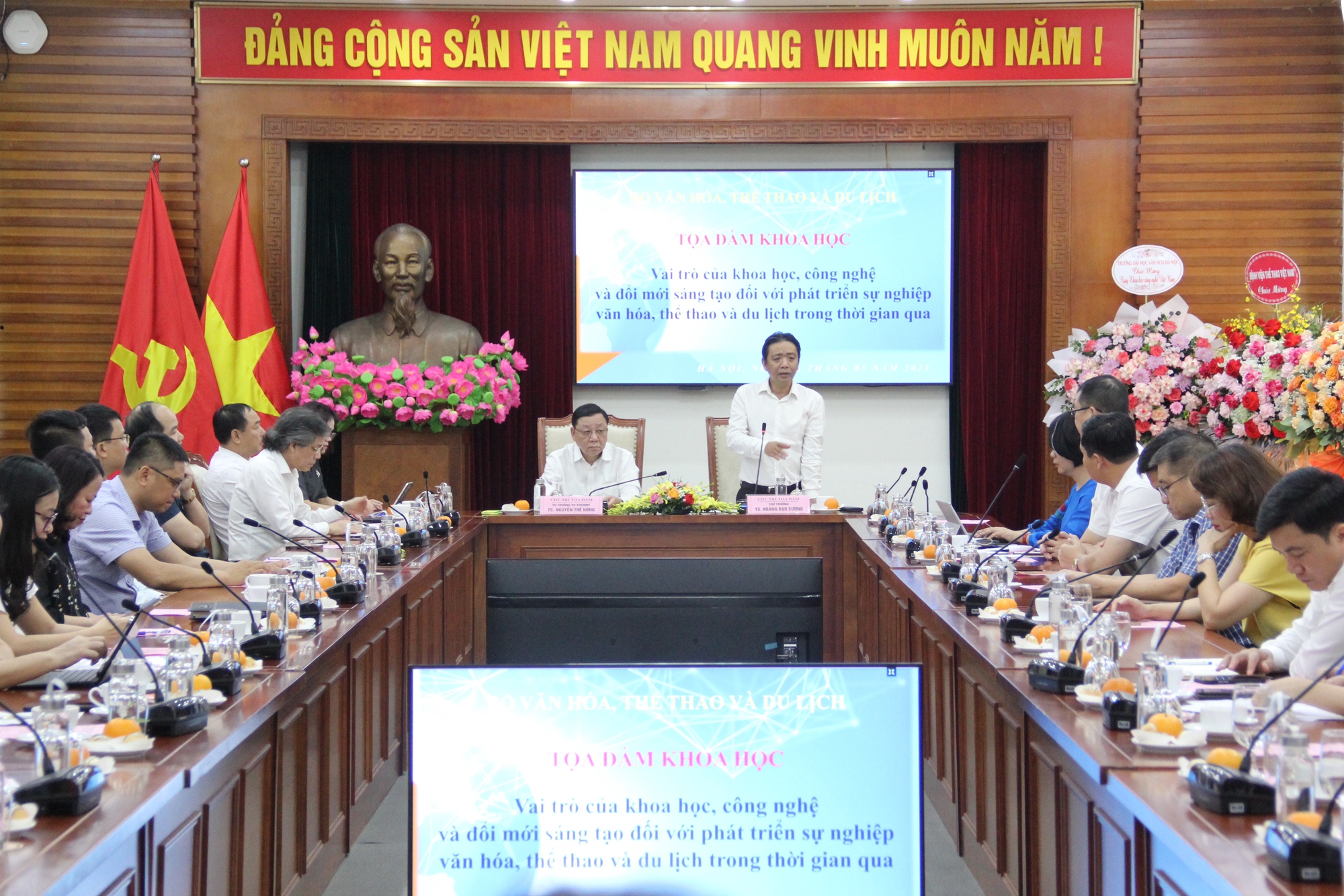 Phát biểu tại buổi tọa đàm, Thứ trưởng Bộ VHTTDL Hoàng Đạo Cương nhấn mạnh, việc gắn nghiên cứu khoa học, công nghệ với đổi mới sáng tạo là yêu cầu tất yếu, bắt buộc cho công tác quản lý và thực tiễn của ngành văn hoá thể thao và du lịch.