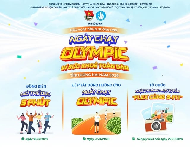 Song song với Ngày chạy Olympic, Tỉnh đoàn và Hội Sinh viên tỉnh Đồng Nai cũng tổ chức chuỗi hoạt động hưởng ứng sôi nổi, diễn ra từ ngày 16 đến 22/3/2026. Các hoạt động hướng đến đoàn viên, thanh niên và sinh viên, góp phần lan tỏa tinh thần rèn luyện thể chất trong giới trẻ.